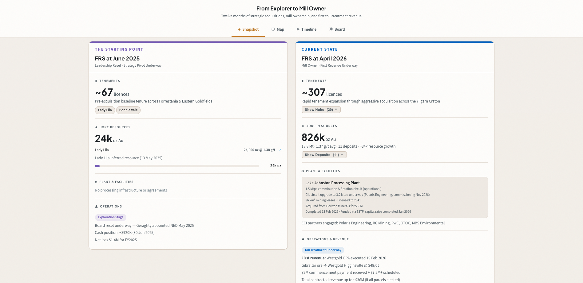 This interactive tool maps the strategic transformation of Forrestania Resources from a single-project explorer into one of Western Australia's fastest-growing gold consolidators.